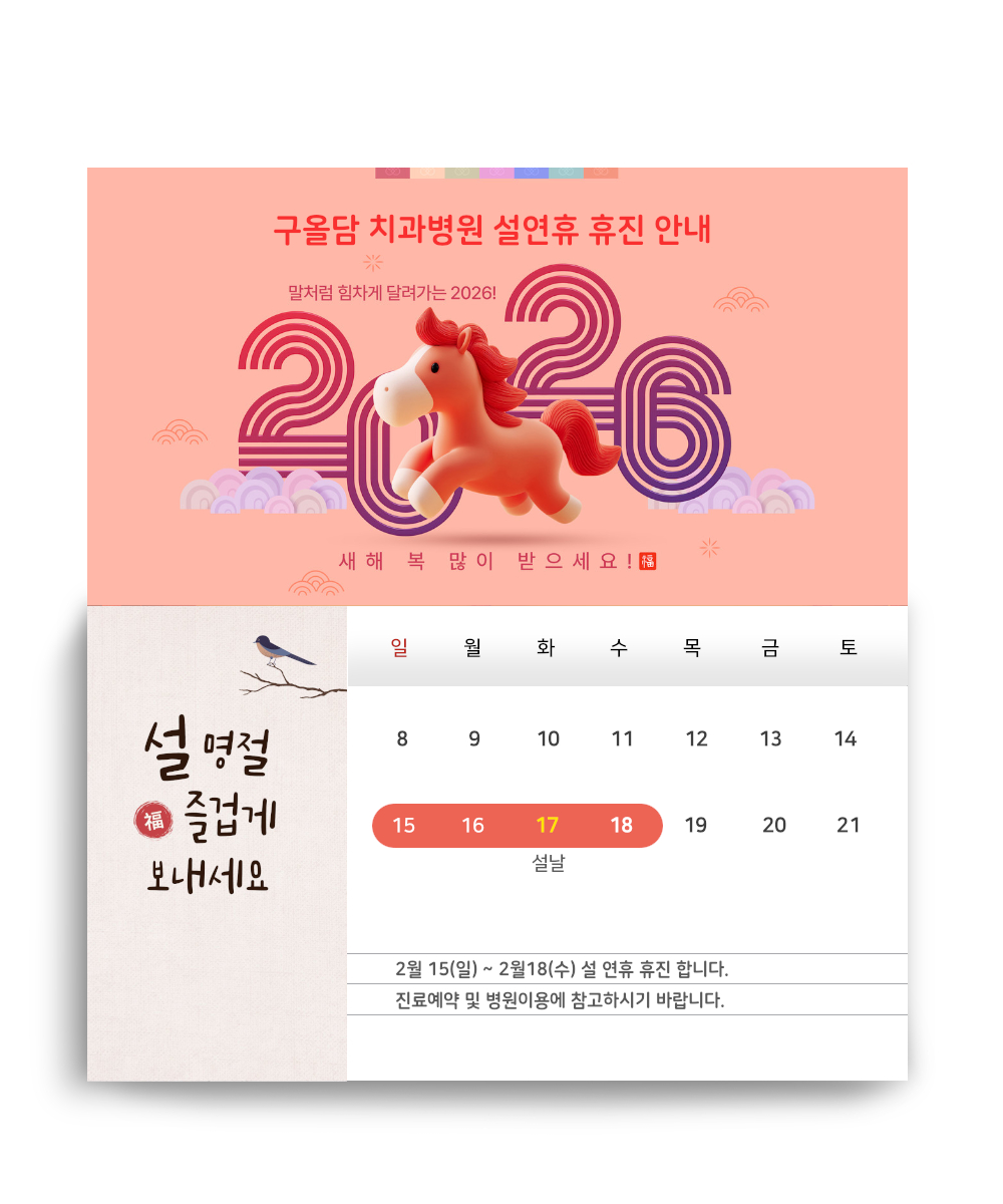2026년 구올담치과병원 설연휴 휴진안내